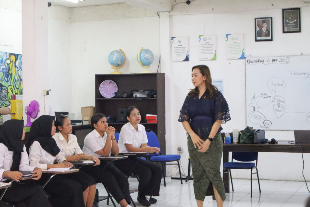 On November 6th, 2025, Bali WISE welcomed Mövenpick Resort and Spa Jimbaran Bali for giving the students of Bali WISE a hospitality workshop. The session lasted for 2 hours, it began with an introduction to Mövenpick’s unique culture and standards, giving the students a clear understanding of what sets the brand apart in the hospitality industry. Ms. Renny, Ms. Putri and Mr. Victor, who were the speakers that day, highlighted Mövenpick’s reputation for quality, service, and experiences; this sparked an excitement among the intake 63 students.