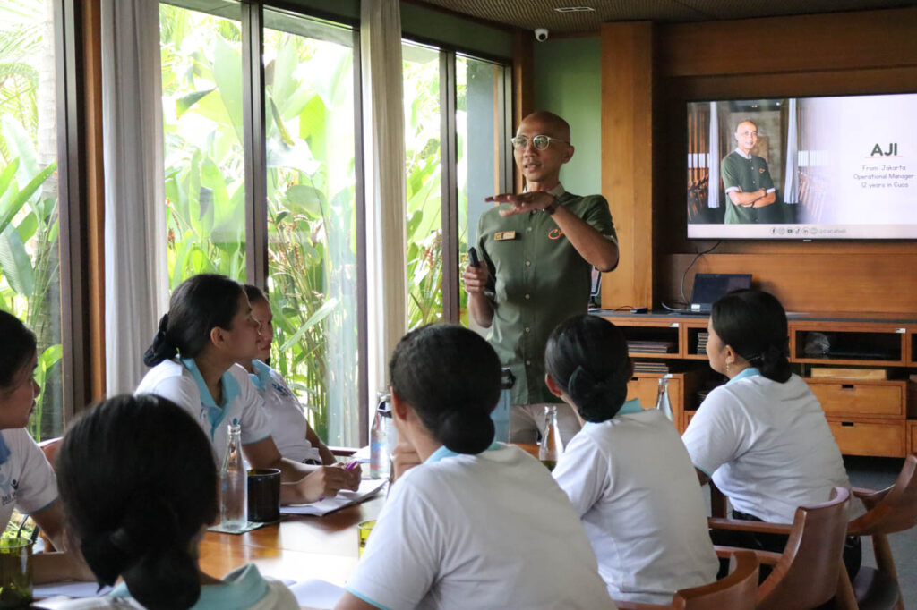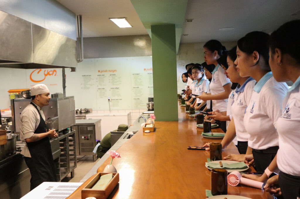 The workshop was led by Ms. Erika the HR Manager at Cuca, and Mr. Aji. Beyond practical skills, the students received an in-depth lesson on hospitality and the operations behind a successful restaurant. They learned about the history of Cuca Restaurant, gaining insight into how it has evolved and earned its renowned reputation. This knowledge helped students appreciate the standards, values, and dedication required to create memorable experiences for guests.