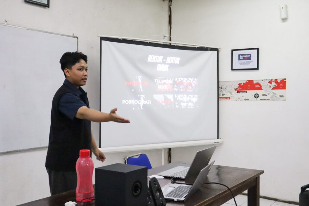 The workshop was delivered by Kak Aris, who introduced the students to the realities of human trafficking and how it often begins with deceptive opportunities. The session also discussed related threats such as online scams, fake job advertisements, and other forms of fraud that can lead individuals into trafficking situations. To deepen their understanding, the students took part in an interactive activity where they analyzed suspicious job postings and shared their observations with the class. Through this exercise, they learned to identify warning signs, examine job requirements carefully, and stay cautious of offers that promise unrealistic salaries or benefits.